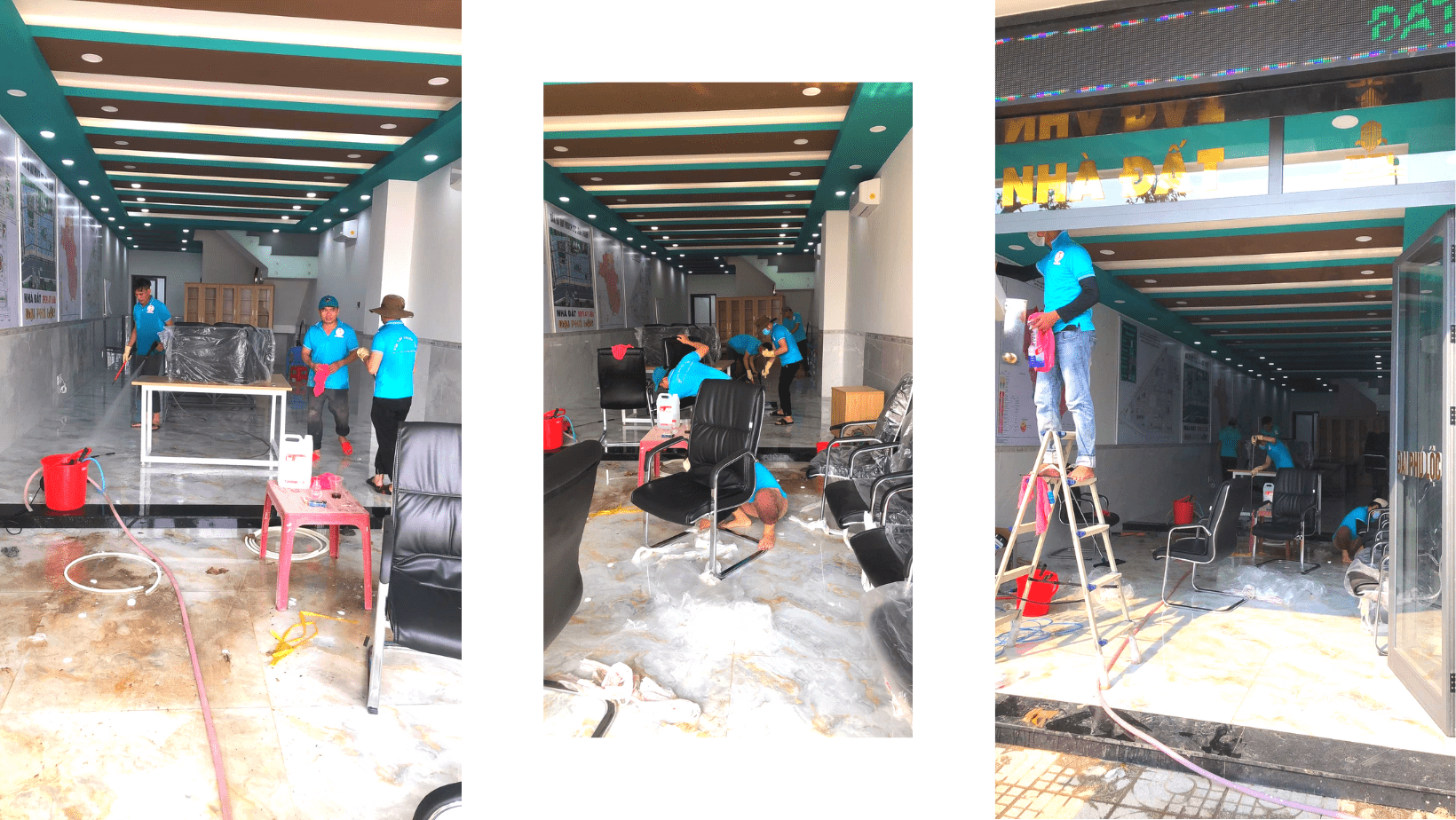Muốn vệ sinh công trình nhanh chóng đầu tiên phải dọc dẹp phần thô cho toàn bộ công trình..